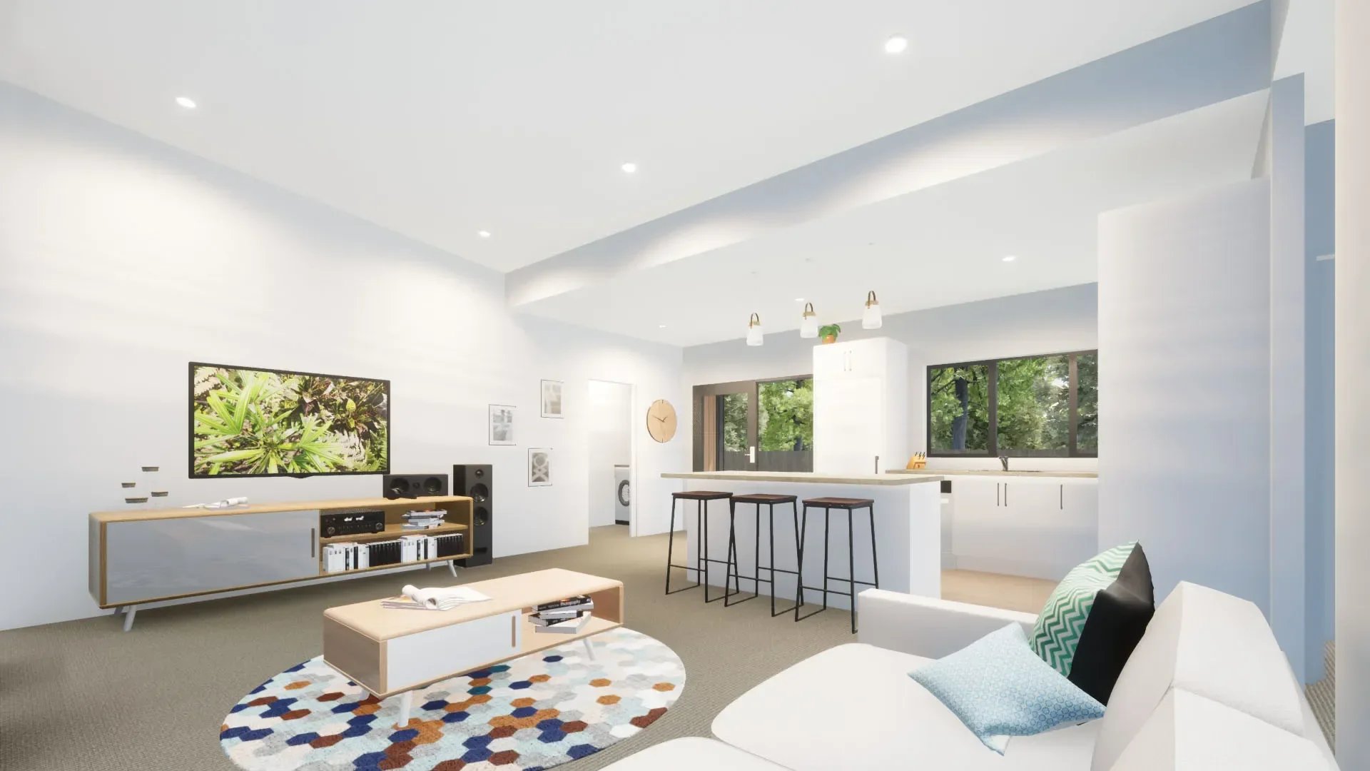 Central open plan kitchen and living area.