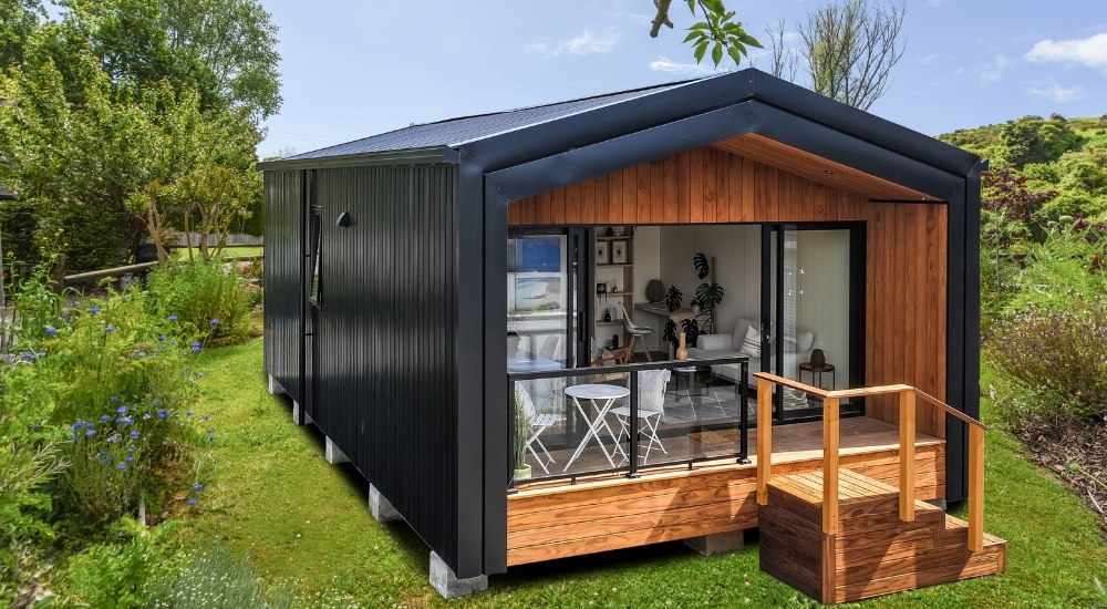 Photography provided is of the 42.95m² Dorset show home and is for illustrative purposes only; design, layout, materials, and finish may vary.